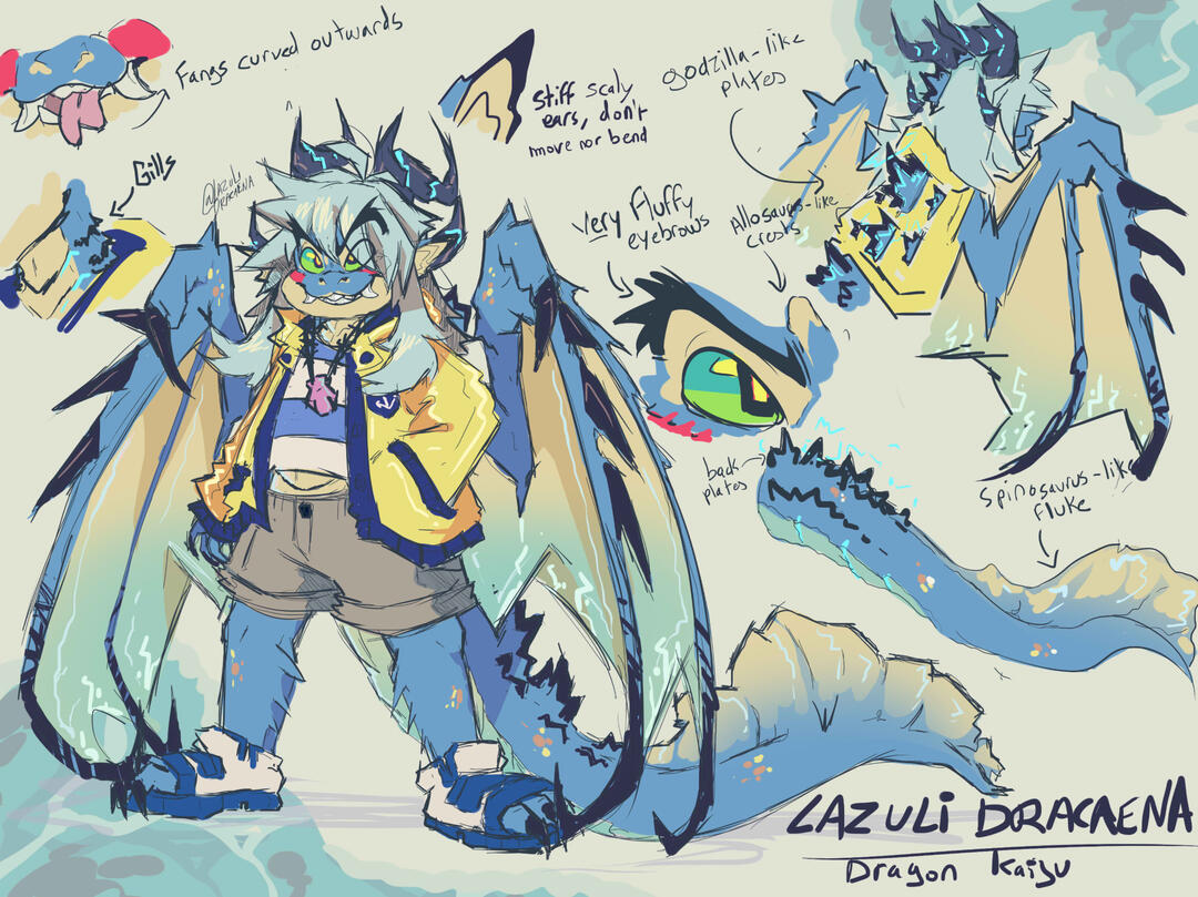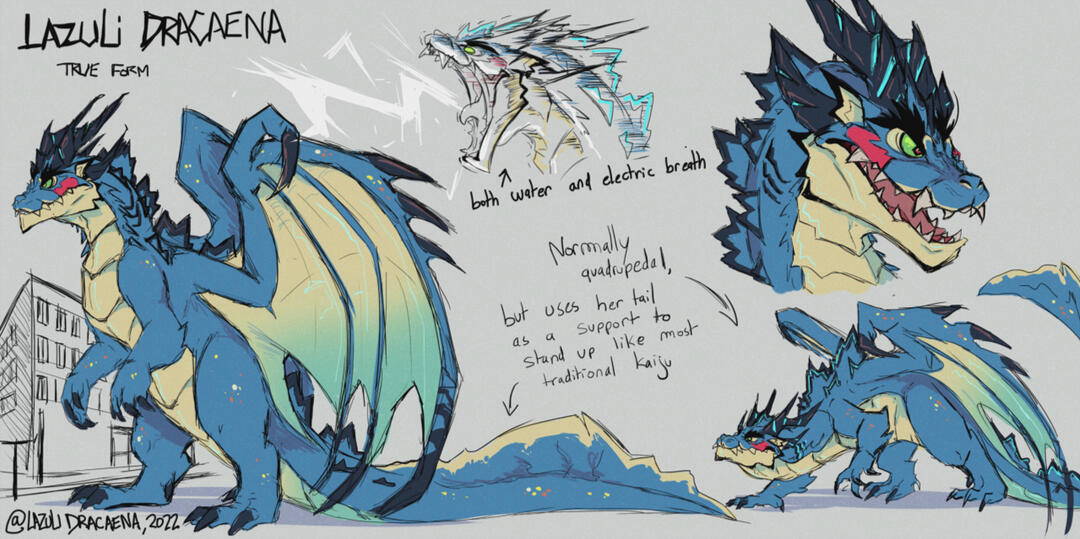 (note: i do have lore for shits and giggles, but i'm not exactly playing a character on stream. You see me how i truly am on video and i don't shy away from talking about my main fanart oriented account.)Height : Barely under 5'7/168cm in casual form (6'/182cm if counting the horns), 177ft/53m tall when standing in her true form (260ft/80m long from snout to tip of the tail on all fours) Tail alone takes up around 40%-ish of her total length.Orientation : Lesbian (ace)Favorite media/Channel content : Touhou series, FFXIV, Monster hunter, Godzilla etc. Whatever the fuck i'm hyperfixating on- Uh I draw and make music too sometimesOther Interests : monster movies, paleo media, Old Sci-fi, fandom discussion with chat.Other things to point out :